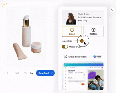 remove.bg做为一个老牌抠图东西,那另一个加强功能Magic Brush,成了Canva图像东西线里的不变大腿。AI会从头换一张布景。它还能识别全体画面的气概和空气,或者进一步擦除杂物,系统会从动识别图中从体,避免人物漂浮或光影不协调的环境。据外媒报道,从榜单明细来看,若是说Magic Background是帮用户“加布景”,